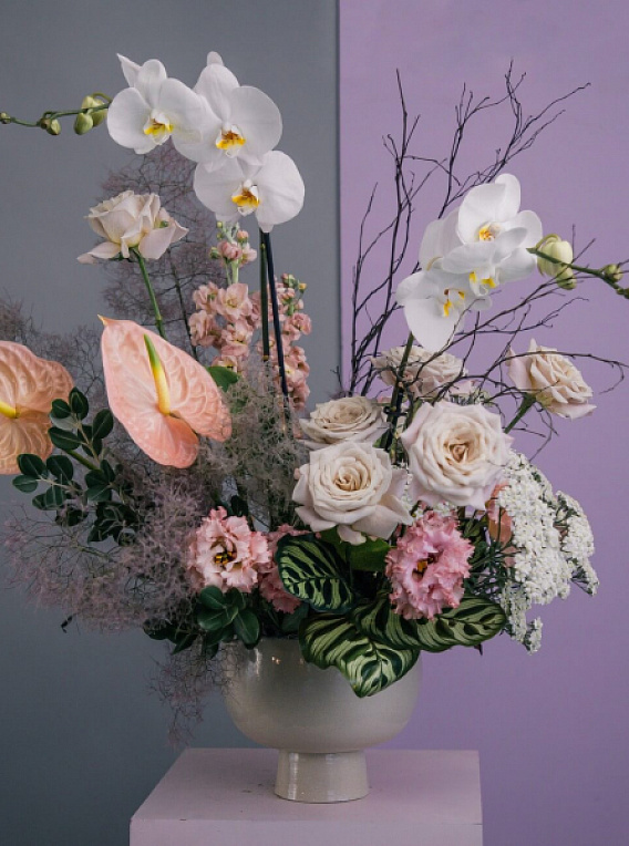 Создает букеты и цветочные аранжировки для различных событий: свадьбы, деловые мероприятия, частные праздники.